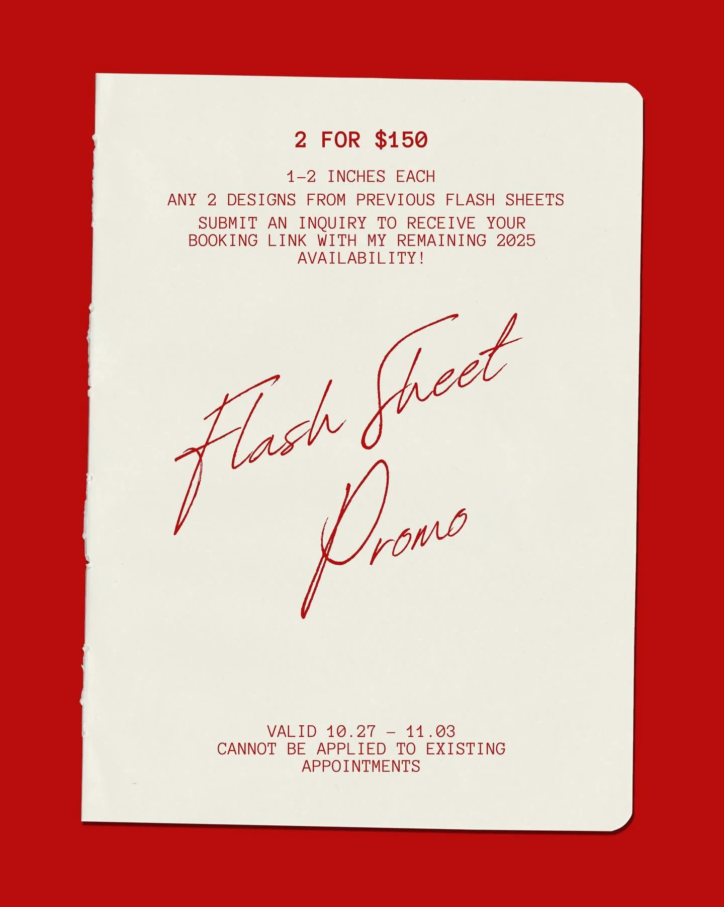 View fullsize Ending the summer with a new flash sheet & a little promo ✨ 1 for $90 or 2 for $150!