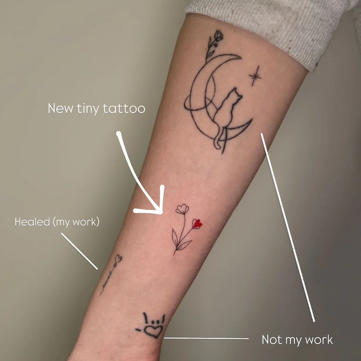 View fullsize So many tiny tattoos, so little time to post them all 💭 here’s a little fine line dump of some I’ve done recently 🤍