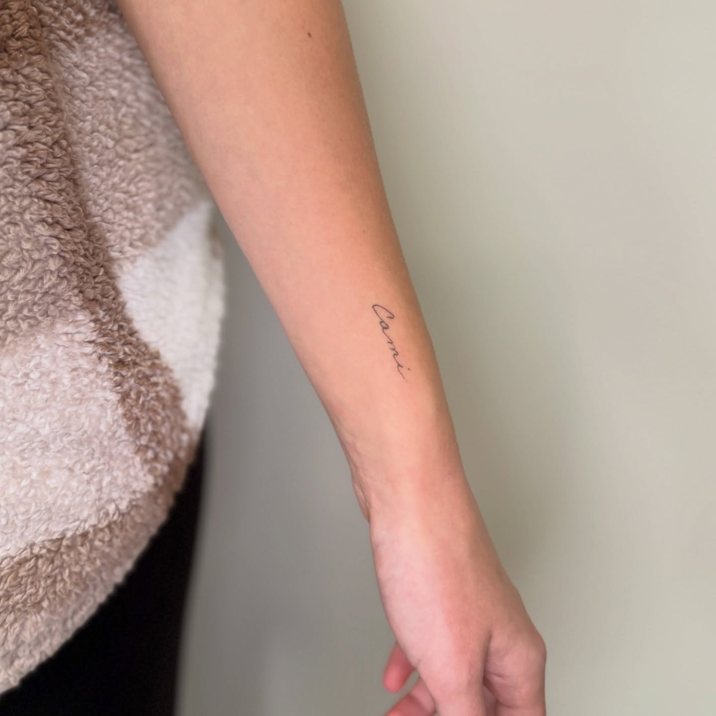 View fullsize It’s the little details for me 🥰 Script tattoos have my heart. Using light pressure + a .25 / 3RL helps me create the most delicate, crisp lines!