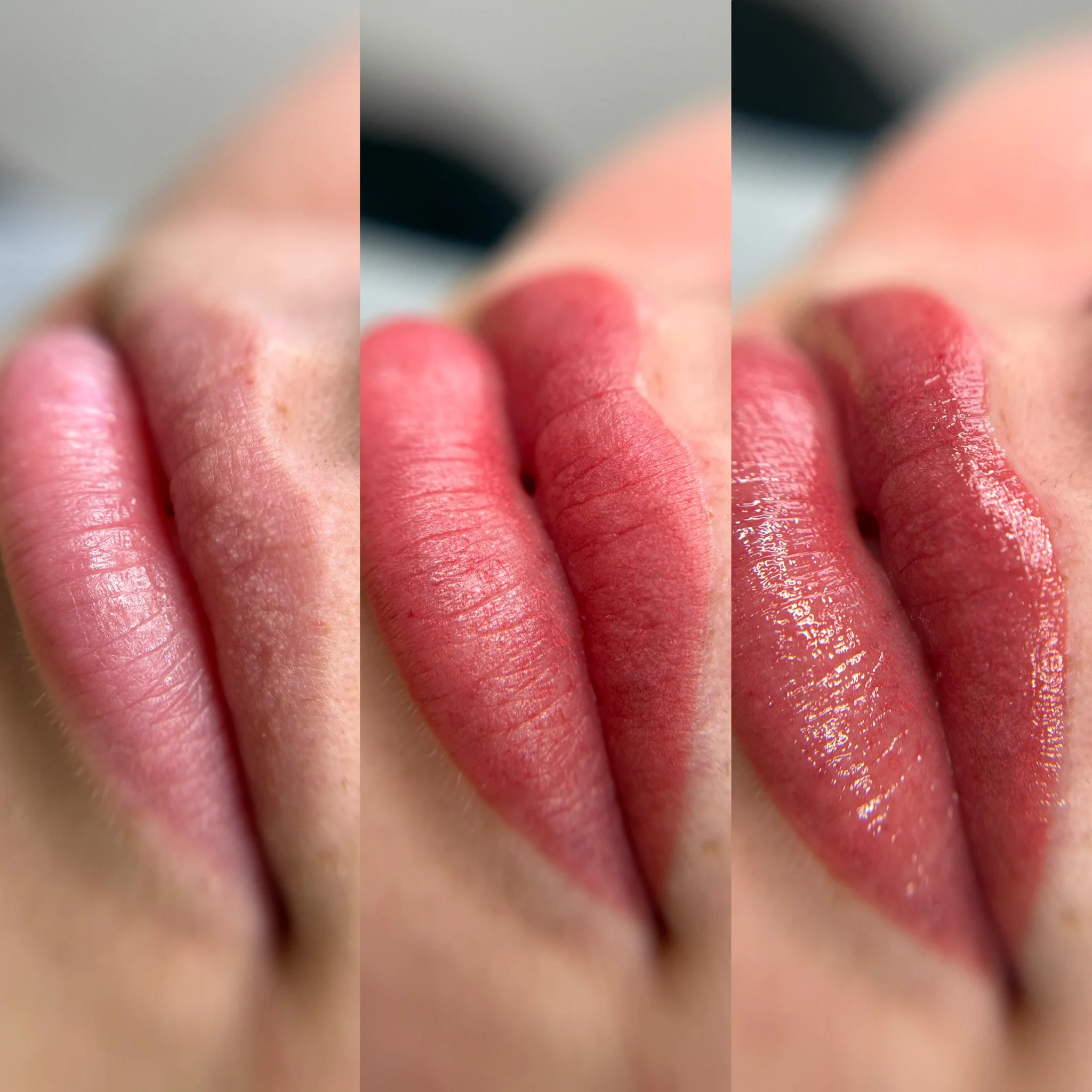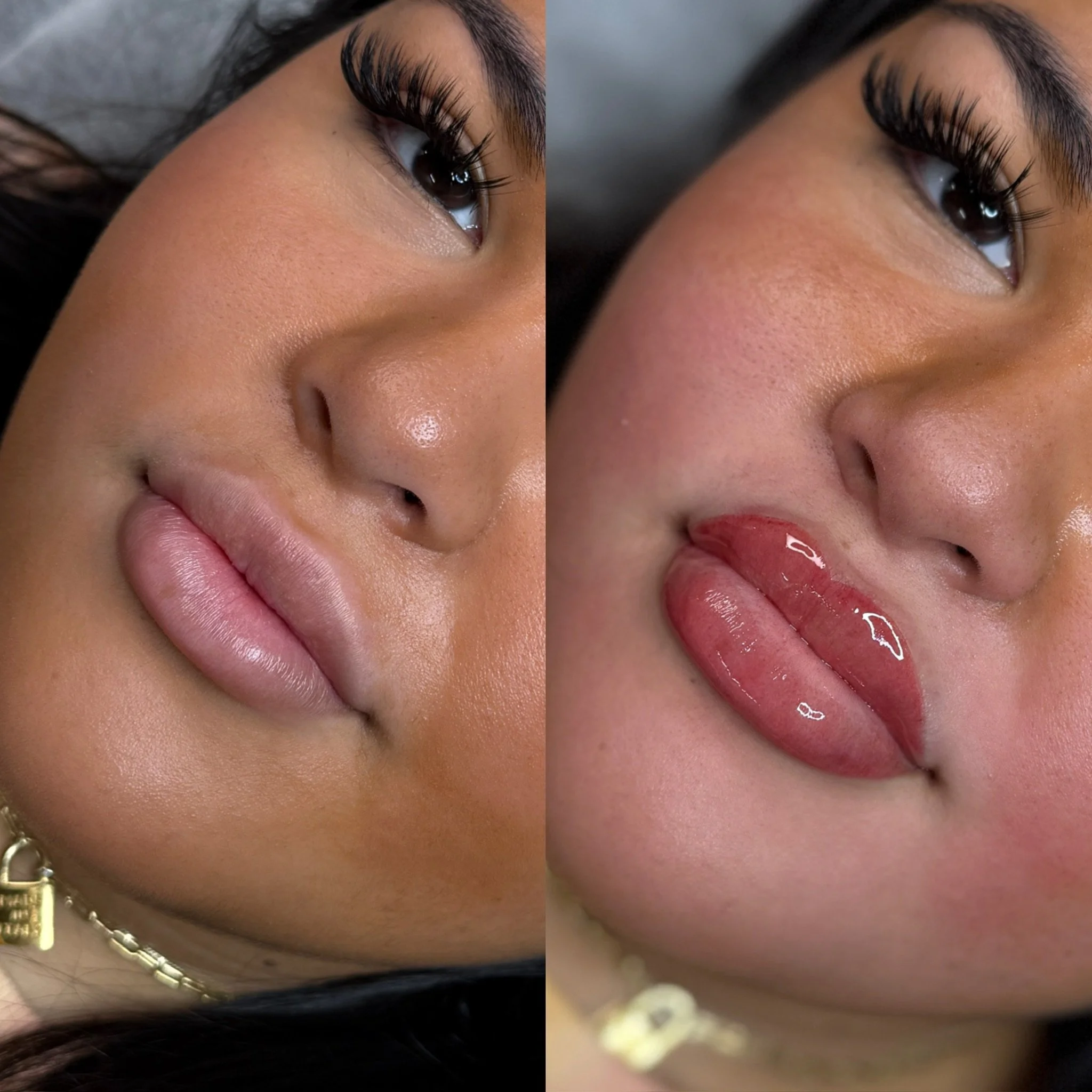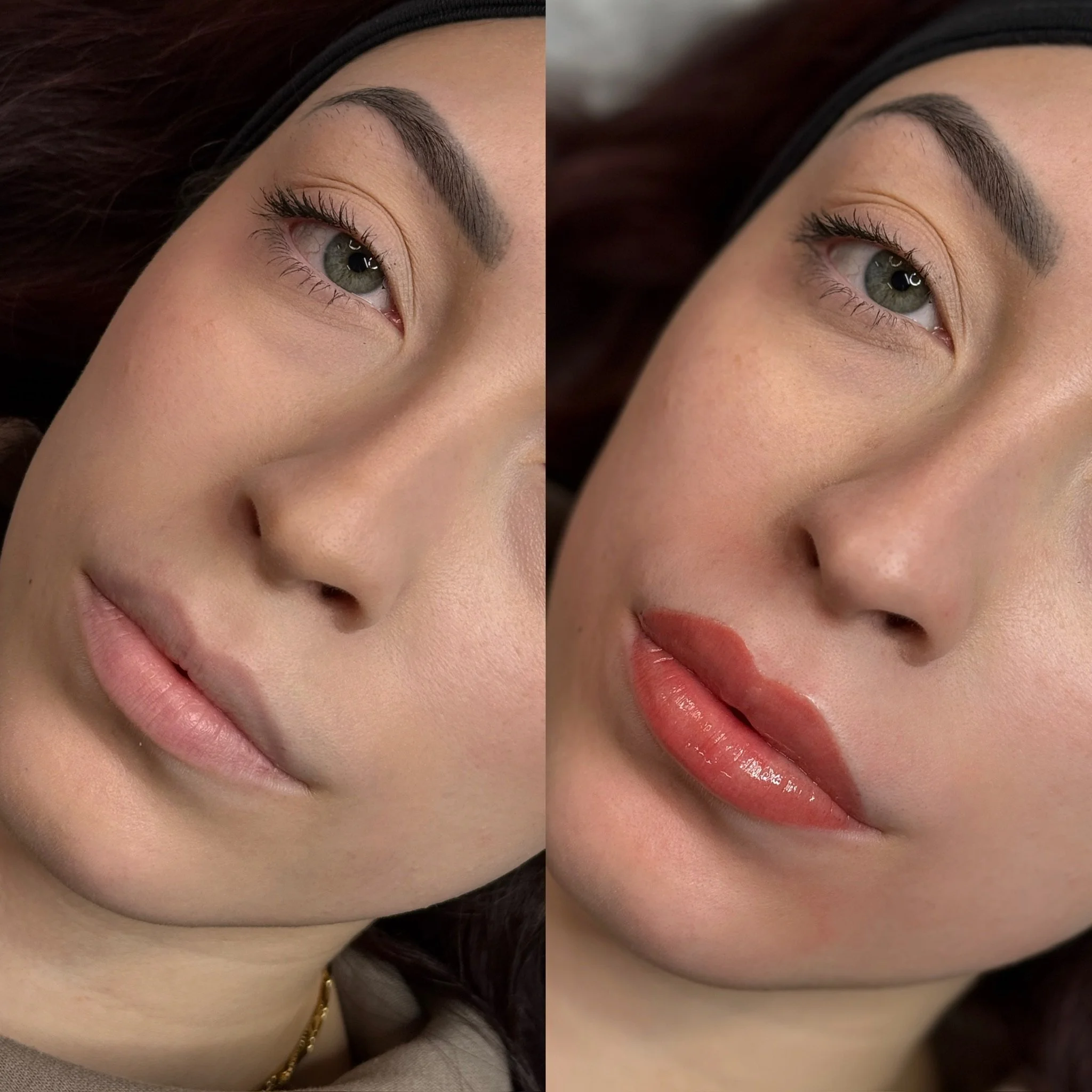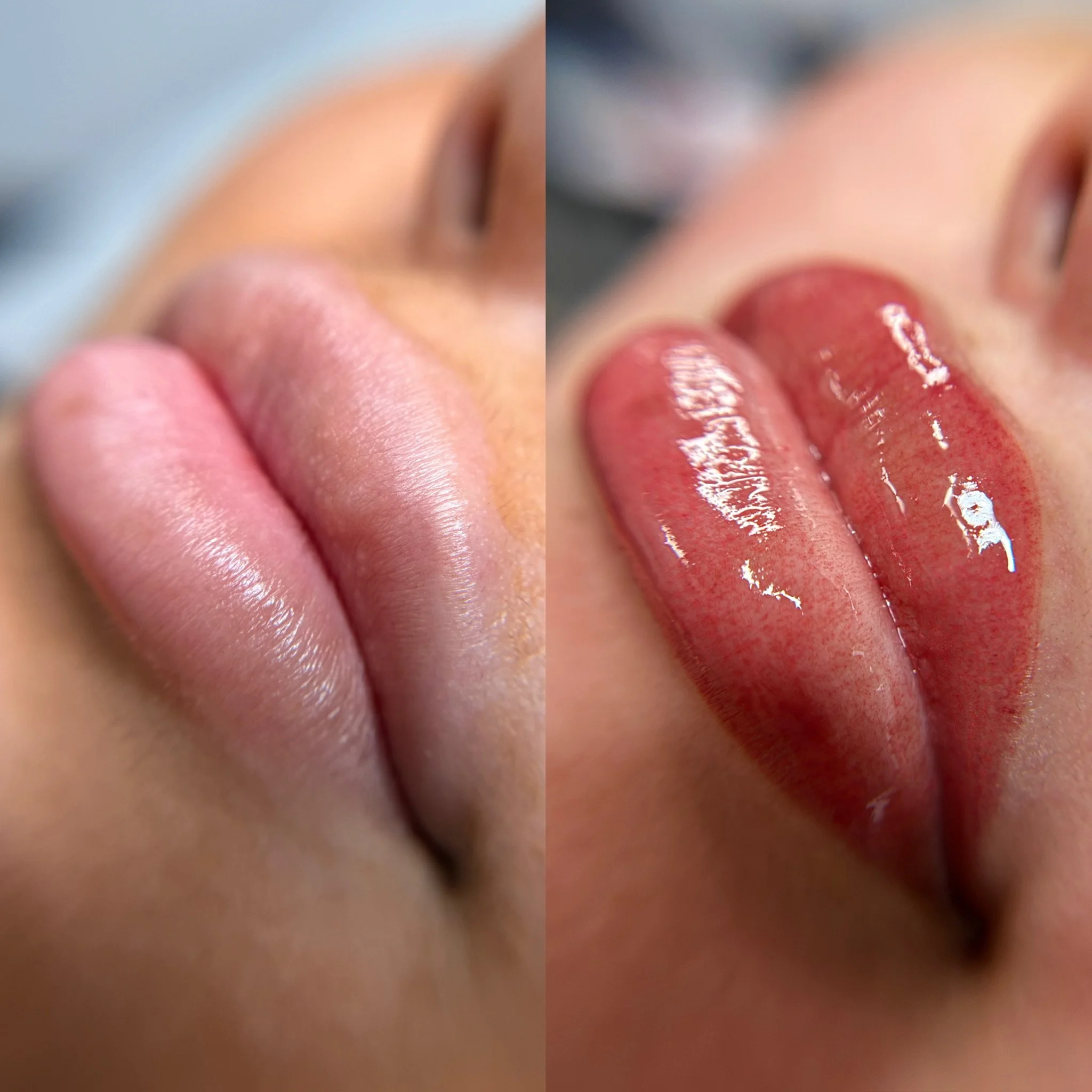 Lip Blush is a semi-permanent procedure designed to enhance color, definition, shape and symmetry. The results can mimic a sheer tint or lipstick opaqueness depending on your personal preference. Multiple sessions may be needed to achieve desired color. First touch up is included, additional touch ups are $150.