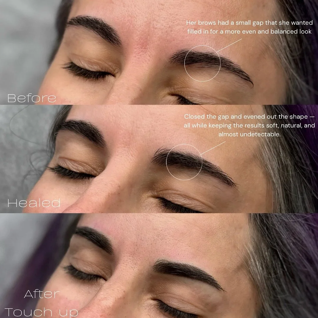 This service is for anyone who has previously received permanent makeup and is still dissatisfied with their current results. Correctional appointments are available to help address issues such as poor symmetry, discoloration, or to cover up old work. Please note that brows must be at least 70–80% faded in order to be considered for correction. To schedule a consultation, please submit a request form along with a clear, makeup-free, unfiltered photo showing the current state of your brows. All correction cases must be reviewed and approved prior to booking an appointment.